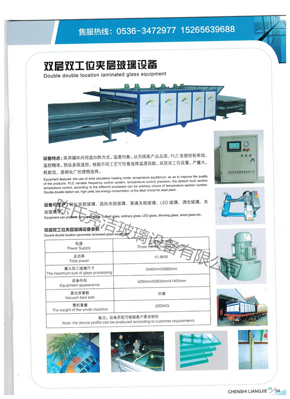 我公司玻璃夾膠爐今天在淄博天成玻璃有限公司安裝設(shè)備,他們公司年前有800平方夾膠玻璃,工程方要求年前交工,我們這家客戶原先用著別的廠家的兩臺(tái)夾膠設(shè)備,由于別的廠家設(shè)備是用熱輻射加熱方式,溫度不均勻,老是出現(xiàn)廢品夾膠玻璃,客戶比較急,工程期限也比較急,這家客戶把玻璃拿到淄博明金玻璃有限公司,我們老客戶那里用我們的夾膠設(shè)備生產(chǎn),看到我們的設(shè)備做出來(lái)的夾膠玻璃成品率100%,沒(méi)有出現(xiàn)廢品夾膠玻璃,設(shè)備產(chǎn)量也比他原來(lái)用的設(shè)備高出一倍來(lái),于是就問(wèn)我們老客戶要來(lái)我公司電話,在電話溝通中讓我們也給他發(fā)去一臺(tái)2.5米*4米的雙層夾膠玻璃設(shè)備,玻璃夾膠爐發(fā)去的當(dāng)天,由于客戶工程夾膠玻璃比較急,我們安裝工人當(dāng)天加班給客戶安裝完設(shè)備后,當(dāng)天加班就給客戶生產(chǎn)夾膠玻璃,玻璃出爐后,客戶看到生產(chǎn)出來(lái)的玻璃成品率100%,非常高興,說(shuō)非常感謝陳氏亮潔玻璃設(shè)備有限公司,以后朋友要設(shè)備,我一定會(huì)介紹給你們,以后要是我們自己上夾膠爐,也會(huì)繼續(xù)與你們合作的。