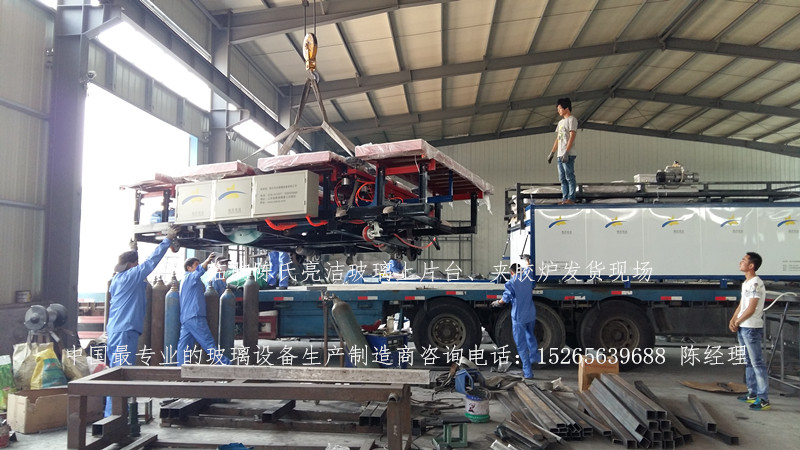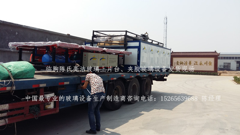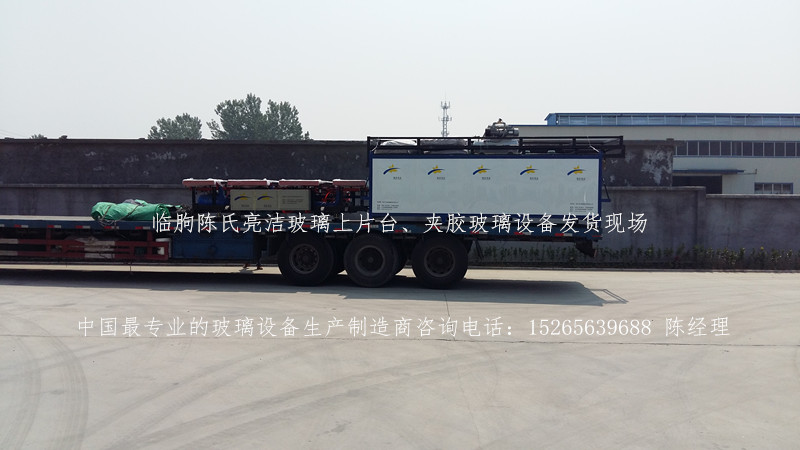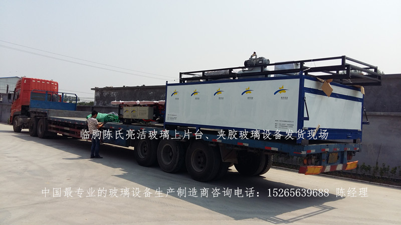 6月8號臨朐陳氏亮潔玻璃設(shè)備有限公司夾膠爐、玻璃上片臺發(fā)貨現(xiàn)場