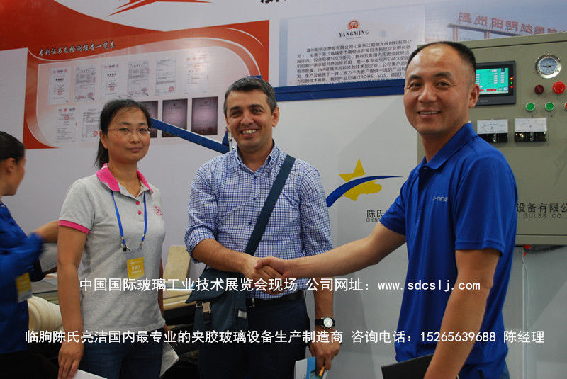臨朐陳氏亮潔玻璃設(shè)備有限公司于2015年5月20-23號(hào)攜帶夾膠玻璃設(shè)備,參加中國******玻璃工業(yè)技術(shù)展覽會(huì)現(xiàn)場